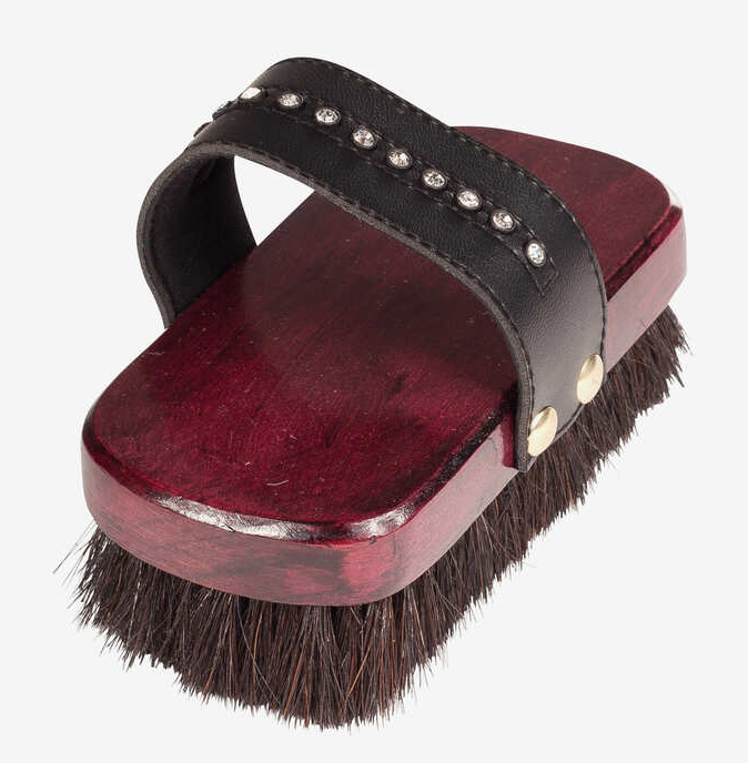 Kleine borstel met borstelharen van echt paardenhaar. Riempje met kristallen.