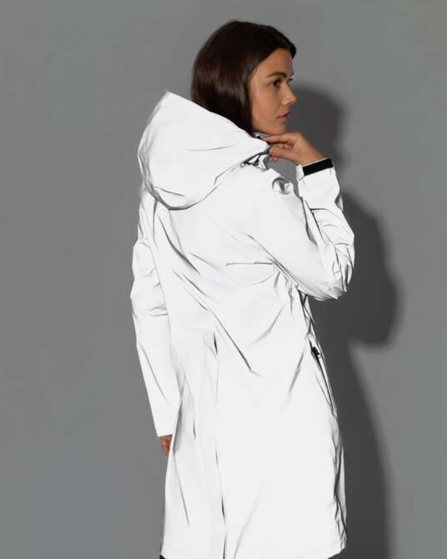 Buitenkant: 100% polyester zilvergrijs reflecterend buitenmateriaal, getapete naden. Voering: 100% polyester