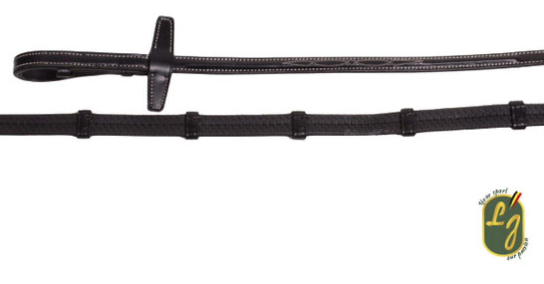 Rubber teugel in buffelleder met lederen stoppers op de rubber voor extra grip.